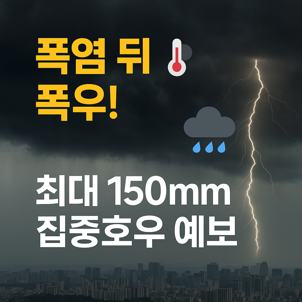 2025년 8월 초, 수도권을 비롯한 중부지방에 3~4일 사이 최대 150mm 이상의 강한 비가 집중될 것으로 예보되었습니다. 이는 다음과 같은 기상학적 원인에 기인합니다: