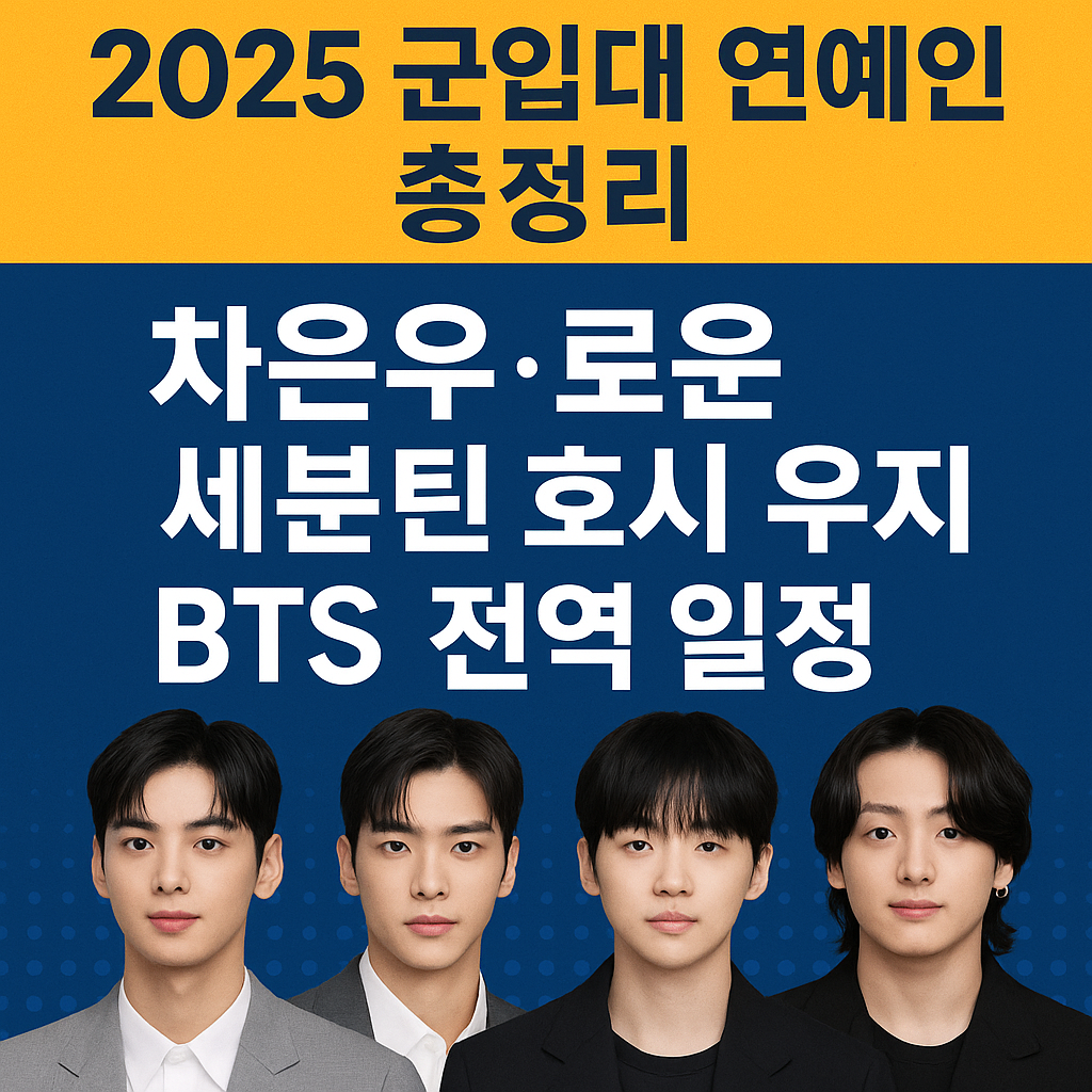 2025년 군입대 연예인과 전역 예정 스타 일정 총정리. 차은우, 로운, 세븐틴 호시·우지·원우 입대일, BTS 전원 전역일과 복귀 소식을 확인하세요.